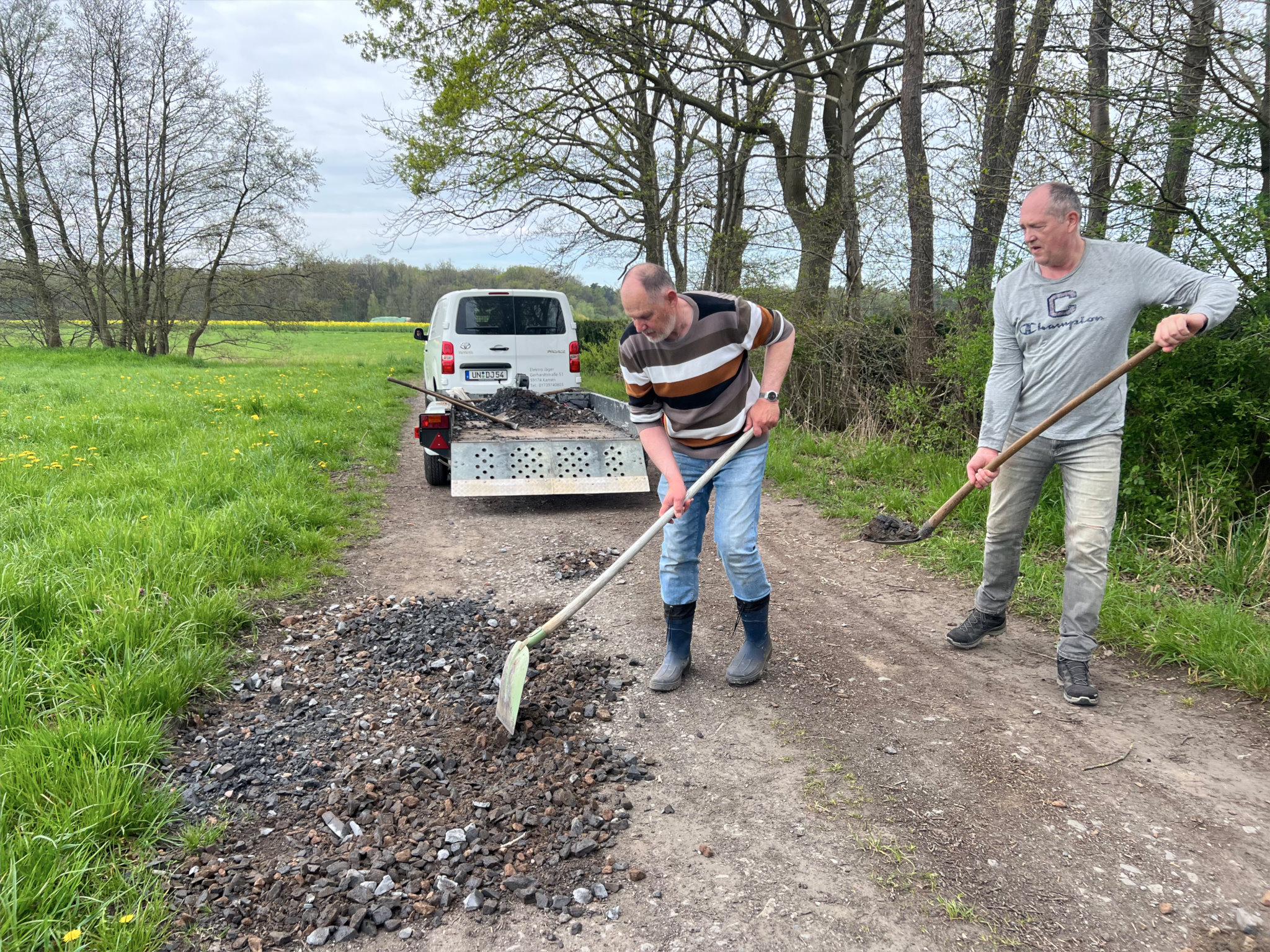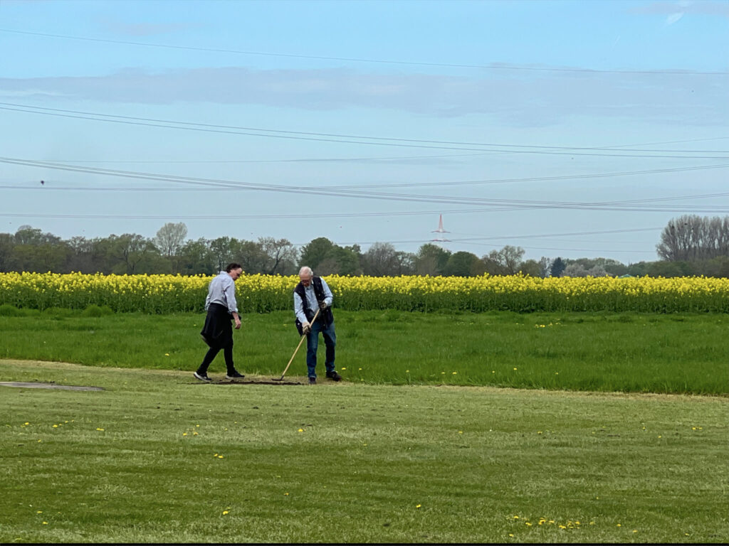 Am 18.04. wurden in gemeinsamer Arbeit verschiedene Arbeiten am Platz ausgeführt. Darunter wurde die Zufahrt ausgebessert. Absenkungen in der Piste wurde mit Mutterboden aufgefüllt, es wurde neuer Rasen gesäht. Anschließend wurde die Piste gewalzt. Der Bach wurde freigeschnitten und von gehölz befreit.